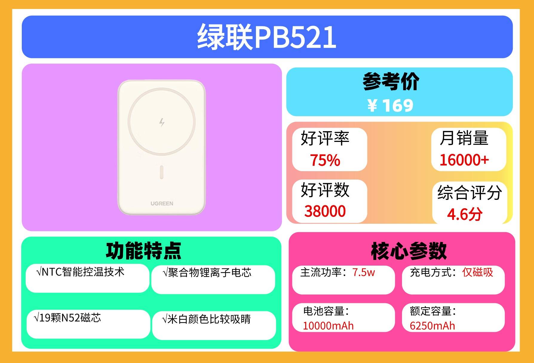 如果你想要一款颜值比较高,并且支持磁吸充电的,可以选择绿联这一款充电宝。