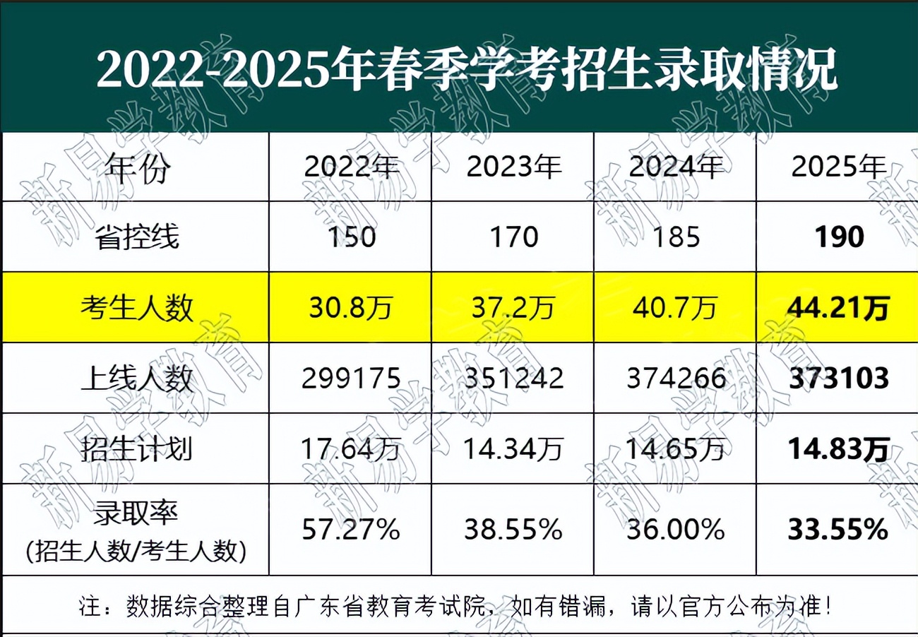根据考生人数的变化趋势,加上推动人数增长的因素依然存在,明年竞争更加激烈是必然的,但是近日广东省教育考试院也发布了最新消息,官宣2026年春季高考招生计划不低于今年!明年春季高考有可能会扩招,能够缓解一部分的竞争压力,同学们不必太过焦虑。