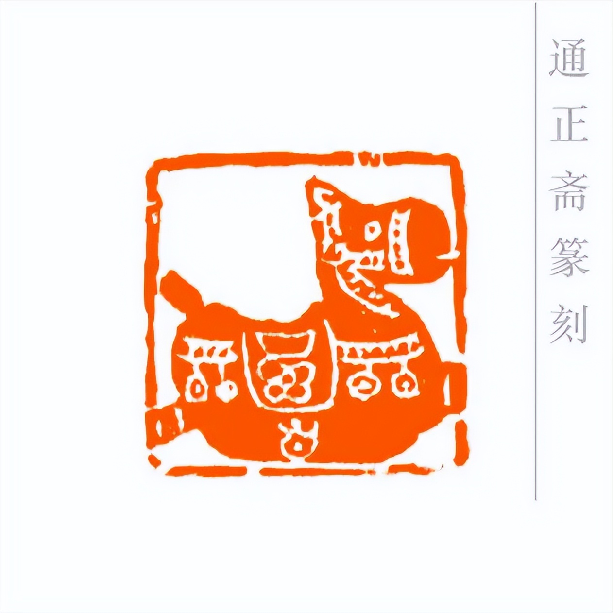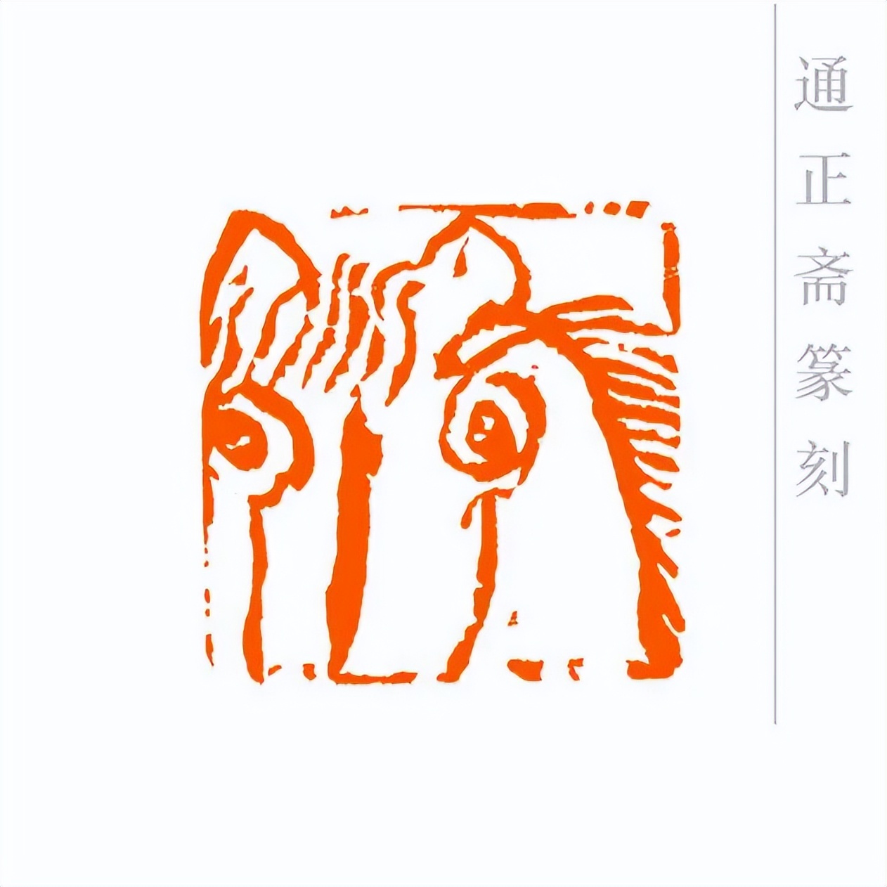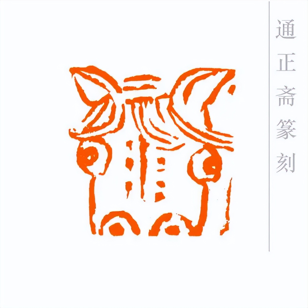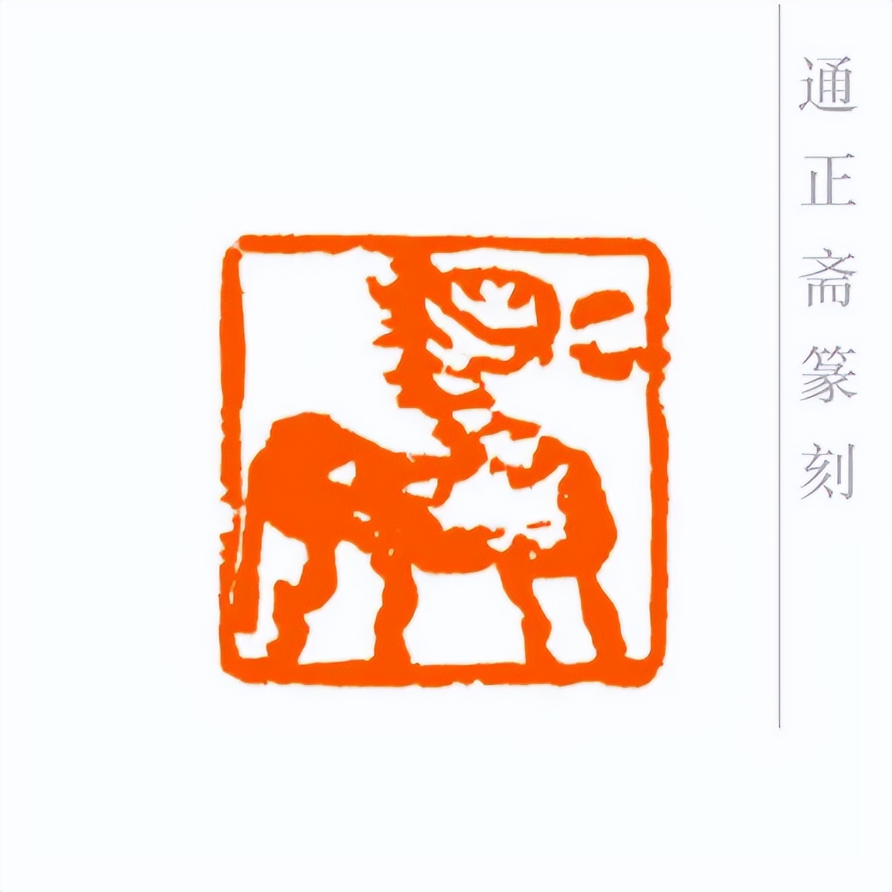 通正斋刀下的肖形马印章,首推造型之妙,篆刻家摒弃繁复装饰,追求线条的凝练与姿态的灵动。印章中的马,或昂首嘶鸣,四肢矫健如蓄势待发,锐气昂扬;或踏风奔跃,躯干线条流畅舒展,气魄豪迈。马的轮廓以简约刀法勾勒,既保留了骏马的写实神韵——鬃毛的飘逸、肌肉的张力、身姿的挺拔,都栩栩如生,又通过艺术化的概括,让造型更贴合印章格局,避免了因细节堆砌而显得臃肿。这种形简神足的设计,让观者一眼便能感受到马的奔放与力量,尽显肖形印以小见大的艺术魅力。