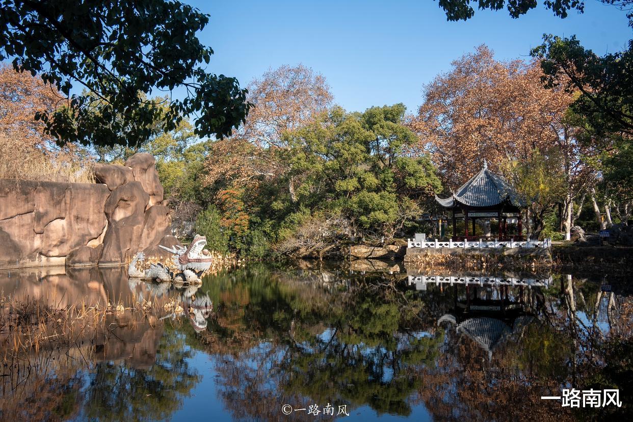 近八百亩的辽阔水域,是公园的魂魄所在。湖名“菱湖”,自古以盛产菱角闻名,如今虽不以采菱为业,依然是一幅生动的江南水乡画卷。漫步湖畔,柳丝拂岸,亭台水榭倒映碧波,四时景致各异。