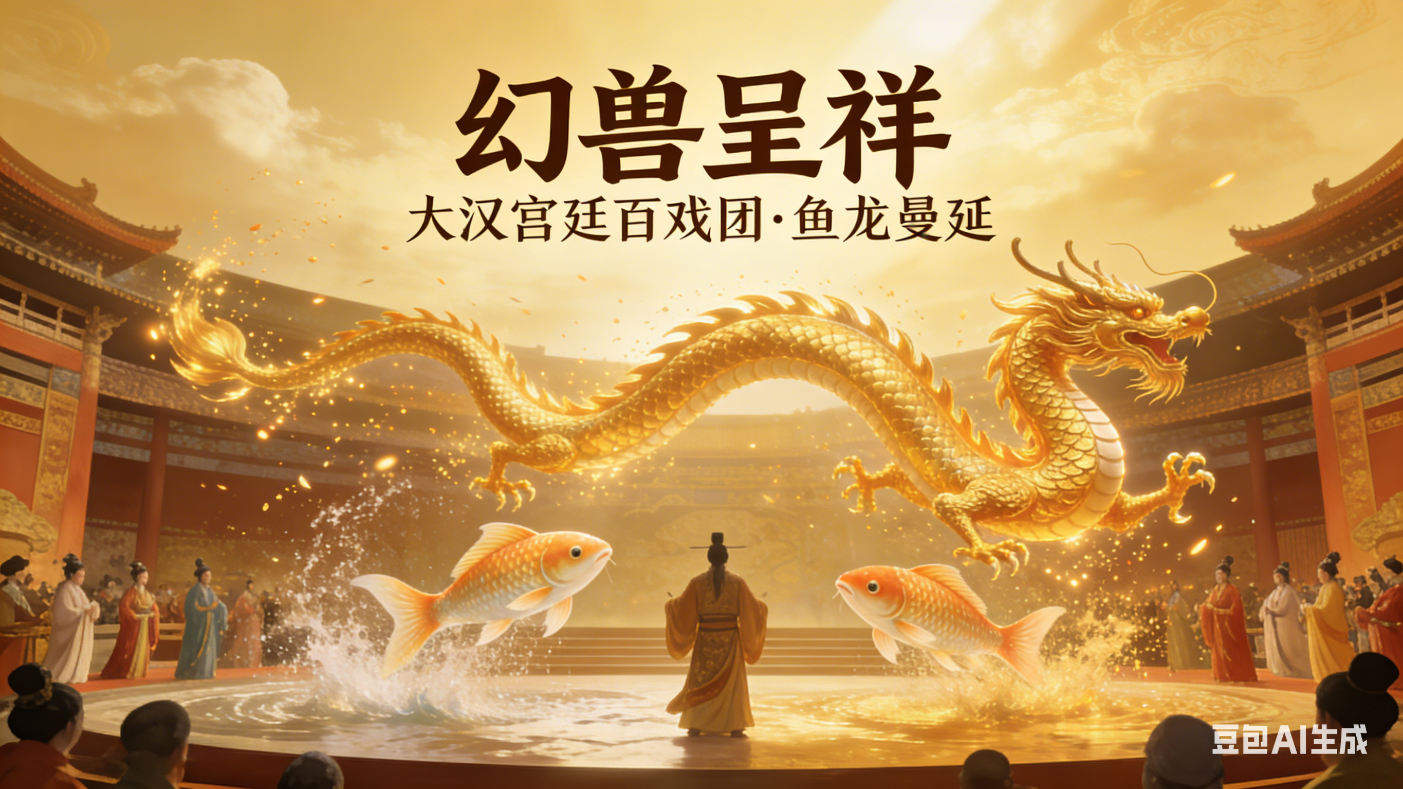 舞台之上,瑞兽自西方踏云而来,刹那间激水漫台,化作一对灵动的比目鱼;转眼之间,鱼身消散,一条数丈长的黄金巨龙腾空而起,鳞爪飞扬,在日光下熠熠生辉,引得全场惊呼连连。