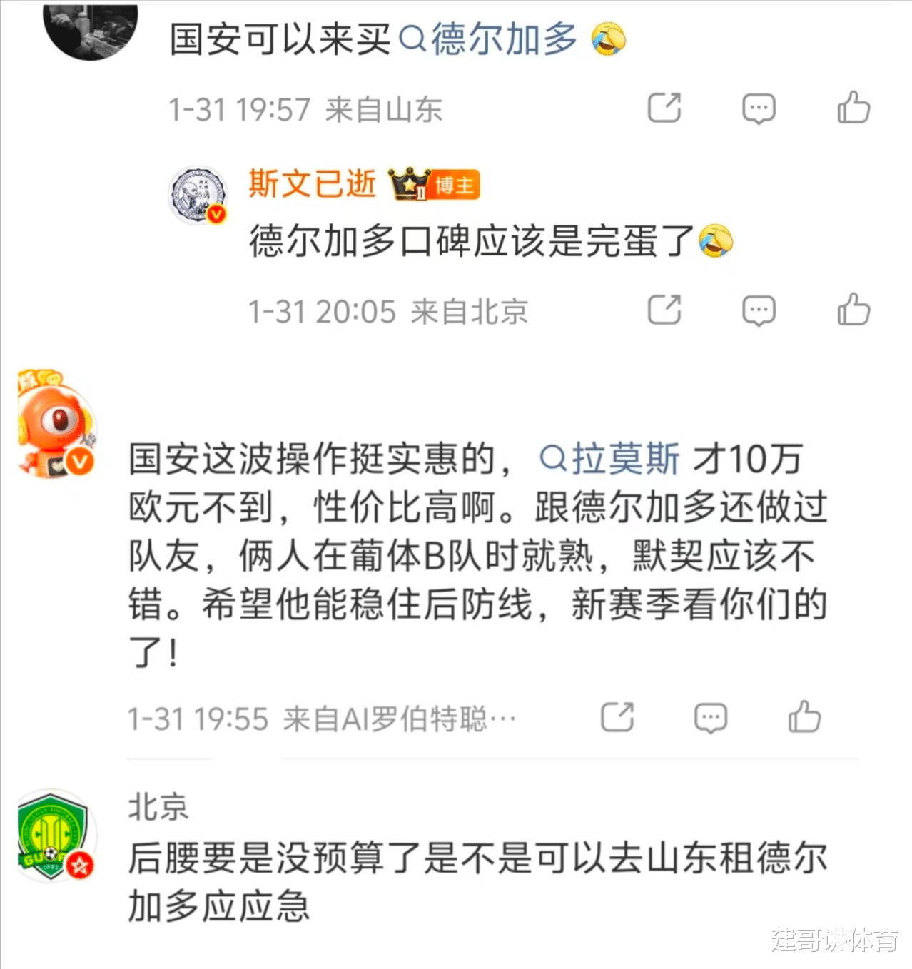 或许就是韩鹏把德尔加多放在后腰上的成功,得到了北京媒体的认可,在北京国安把德尔加多前队友都能签下的时候,感觉德尔加多下家是北京国安应该不是梦想,若拉莫斯和德尔加多相聚北京国安,或许会让北京国安成为中超新赛季的争冠强队。