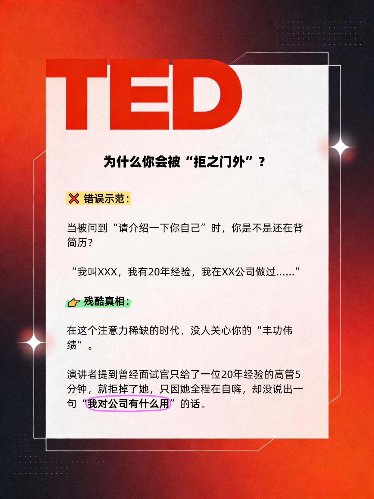 #自我介绍 #职场干货 #面试技巧 #TED演讲