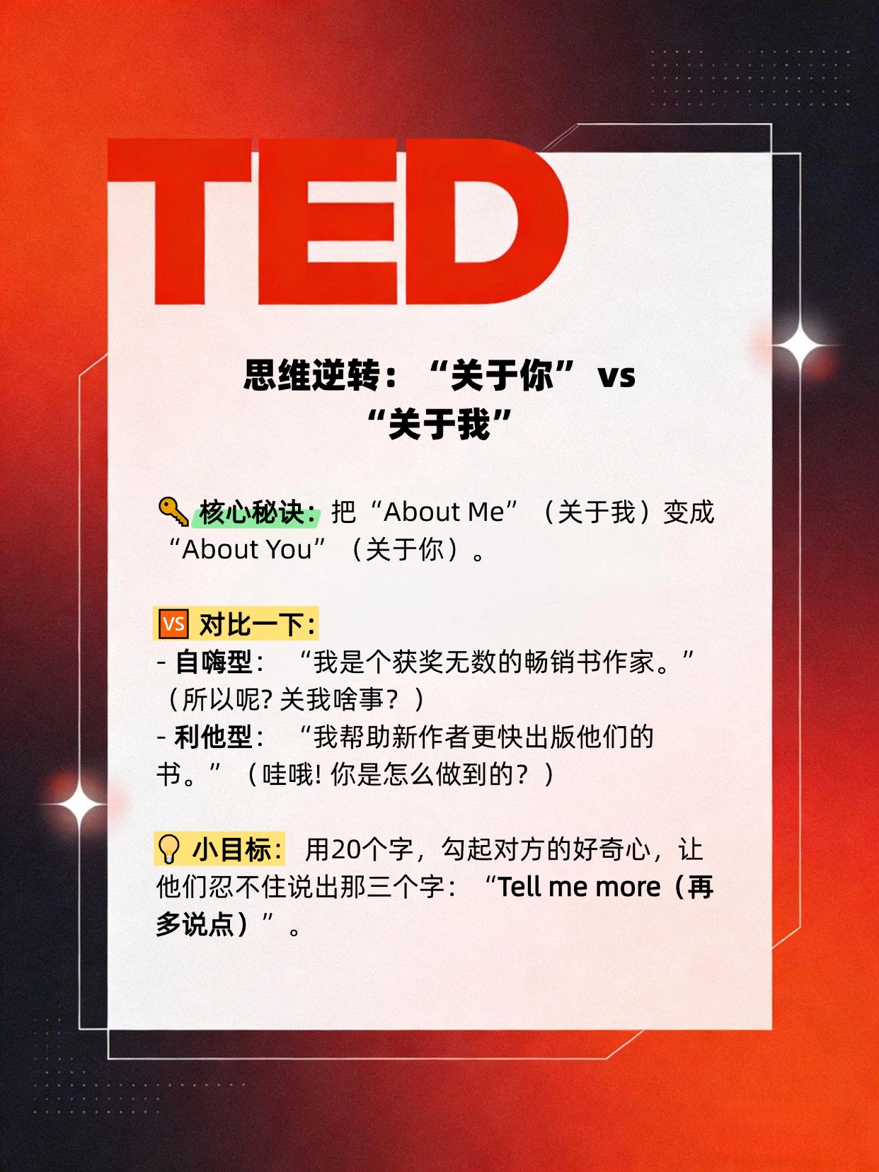 ✅ 试试这个20字黄金法则,让对方忍不住对你说:“Tell me more!”(请您多说点)
