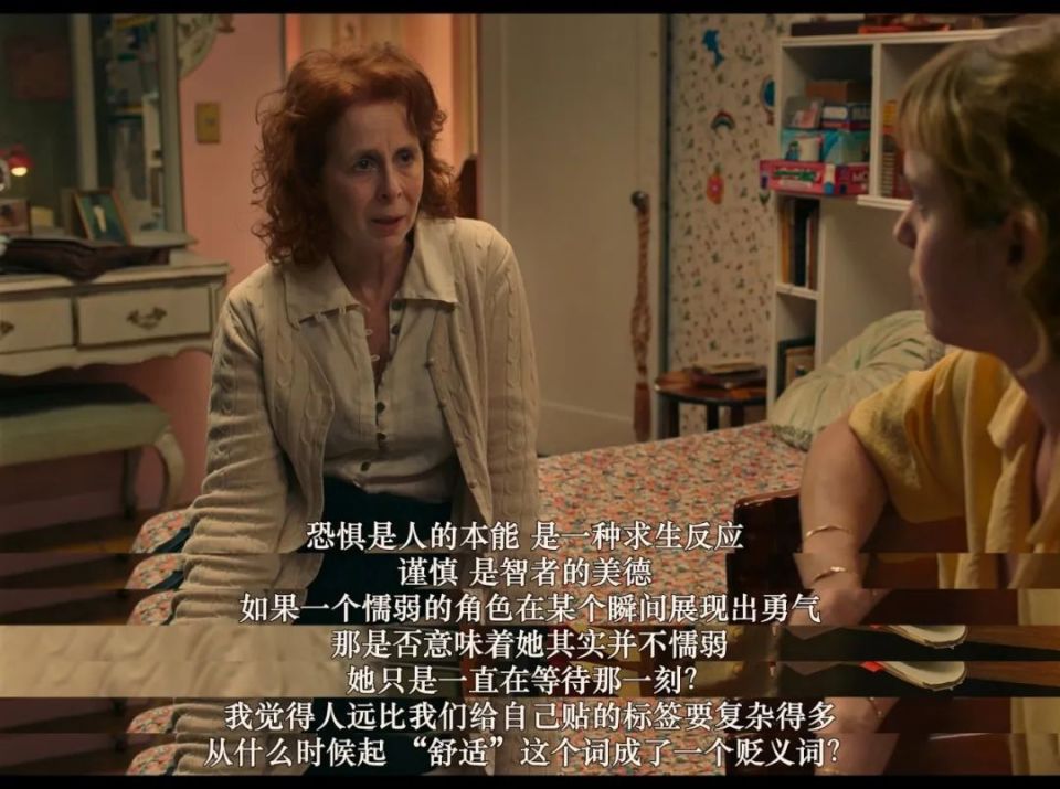 影片中,女主曾与母亲聊过“懦夫与勇敢”这个话题,人们大多认为,被恐惧支配的人就会成为懦夫。她还提出了一个假设,话语中其实也在暗示自己也是那个活在人设中的“懦夫”。