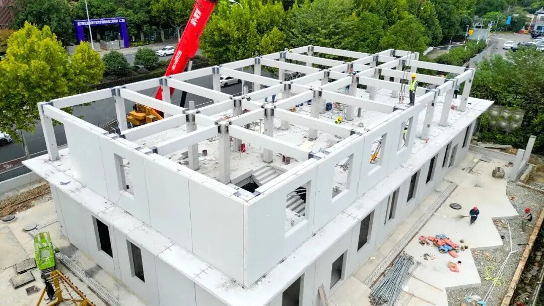 走进银桥消防站,这里看不到传统工地的景象。所有墙体和楼板等构件都在工厂提前制作完成,运到现场后像“搭积木”一样迅速组装。该站采用的混凝土-钢节点装配式混合框架结构体系,“不仅建造效率高,在防火和耐用性方面也表现突出。”东方红建设集团的相关负责人介绍。