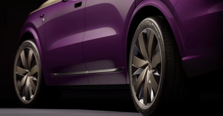 来到车身侧面,全新一代理想L9尺寸来到了5255*2000*1810mm,轴距为3125mm,相比于现款车型,车长和轴距都有提升,而短前悬、长后悬的设计,加上定制版的双拼色车身辅以腰线点缀,旗舰SUV的气场一下就提上来了。此外,门把手改为半隐藏式,对于用户而言,这样实用兼具安全的门把手设计,与此同时新增了一款22英寸超大轮毂,也是新车设计的变化之处。