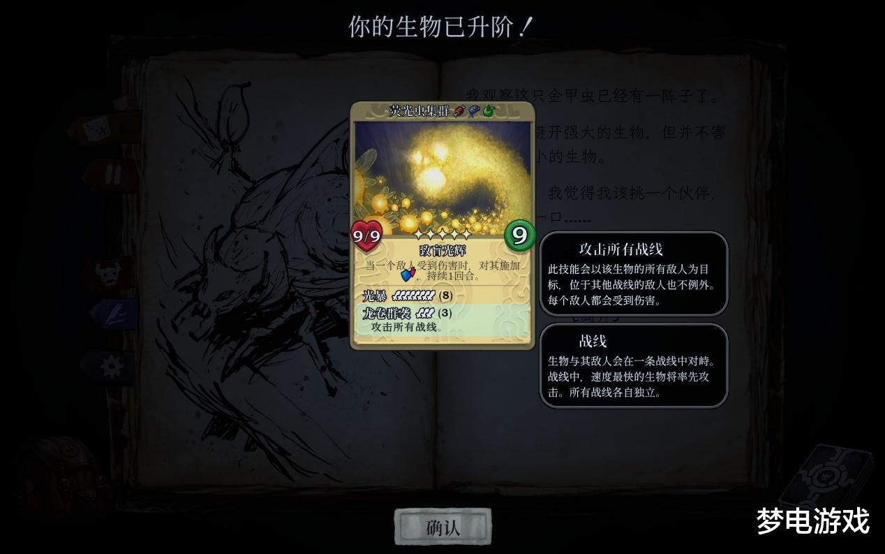 游戏中生物分为一定的星级,除了捕获之外,还有特定事件供玩家强化和获取高星级的生物。比如固定事件金甲虫,就会将玩家卡组一张初始卡进化为高级形态(猜猜这个看上去就强的可怕的家伙是谁进化的)。