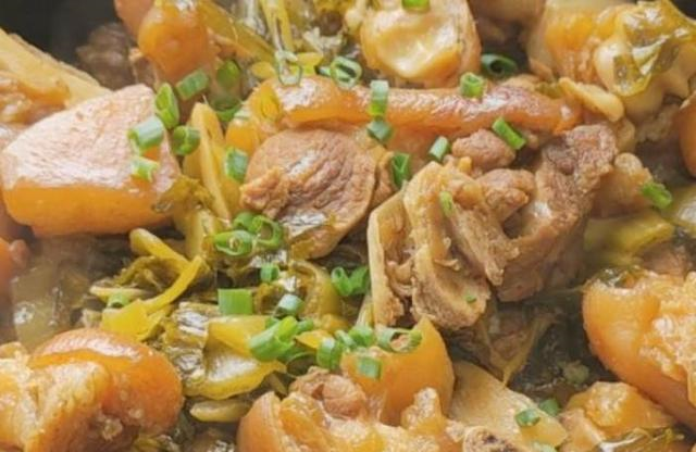 接下来,锅中加油,放入切好的酸菜、生姜、大葱和大蒜,中火炒出香味。酸菜的酸香是这道菜的灵魂,炒制可以更好地释放其风味。然后,将炒好的酸菜和猪蹄一同放入炖锅中,加入生抽、老抽、盐和白糖,倒入足够的清水,大火烧开后转小火慢炖。慢炖的过程可以让猪蹄更加入味,肉质更加酥软。