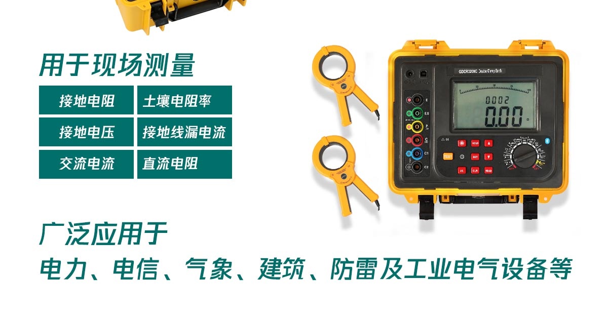 变频抗干扰能力突出,适配复杂电磁环境。设备内置变频电源模块,通过45Hz/55Hz双频率切换与数字滤波技术,在15V工频干扰下误差仅0.002Ω,有效解决了变电站、工业厂区等强电磁环境下“测不准”的行业痛点。功能集成全面,支持接地电阻、土壤电阻率、地电压多参数测量,量程覆盖0.001Ω~5KΩ,兼顾低压设备与大型地网测试需求,一台设备可满足多场景检测需求,降低用户采购成本。