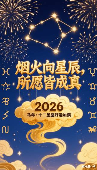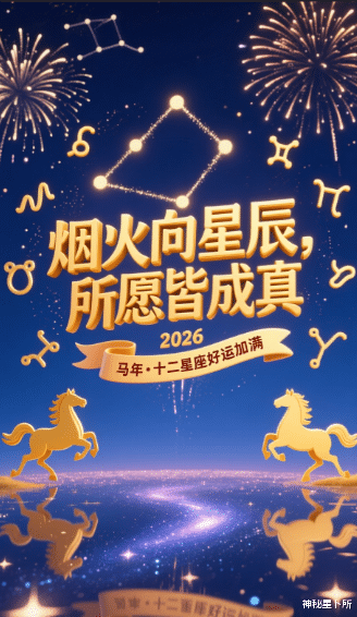 烟火向星辰,所愿皆成真。今夜,让我们一起清零霉运,加满好运,以全新的姿态迎接 2026 马年。愿十二星座新一年无灾无难,顺顺当当,财源滚滚,喜乐常伴,所行皆坦途,所遇皆美好,岁岁常欢愉,年年皆胜意。