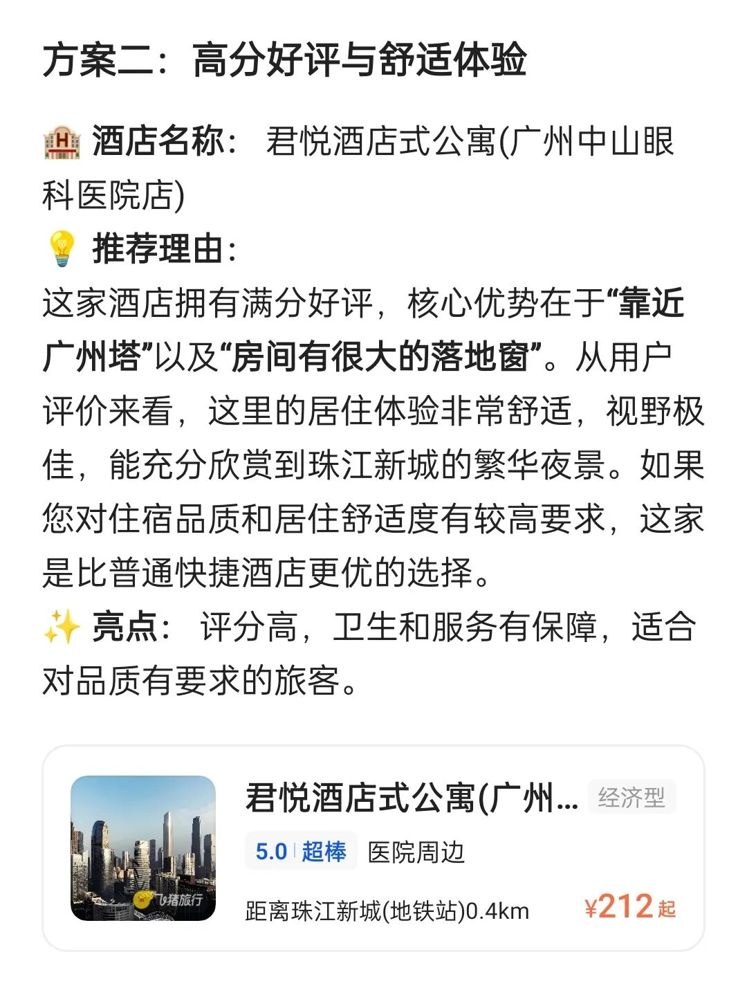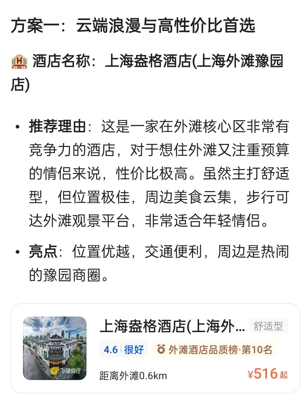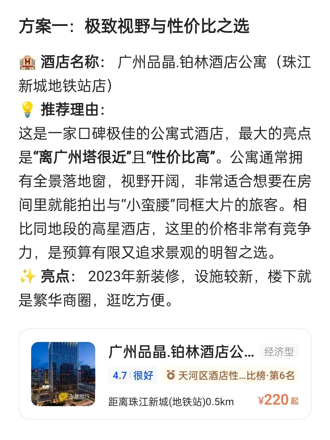 ▲AI生成酒店推荐,一键点击即可订房