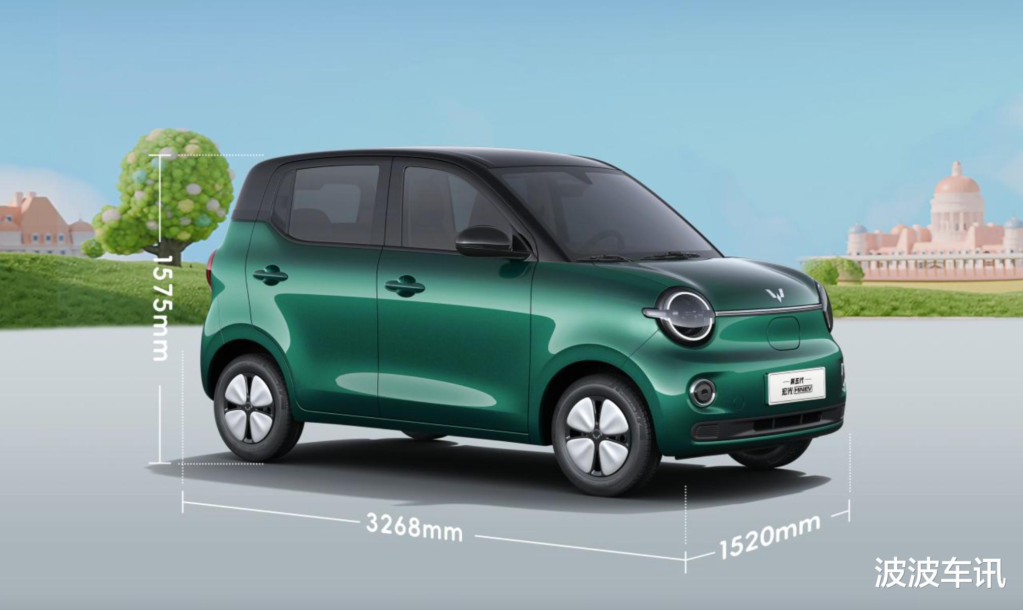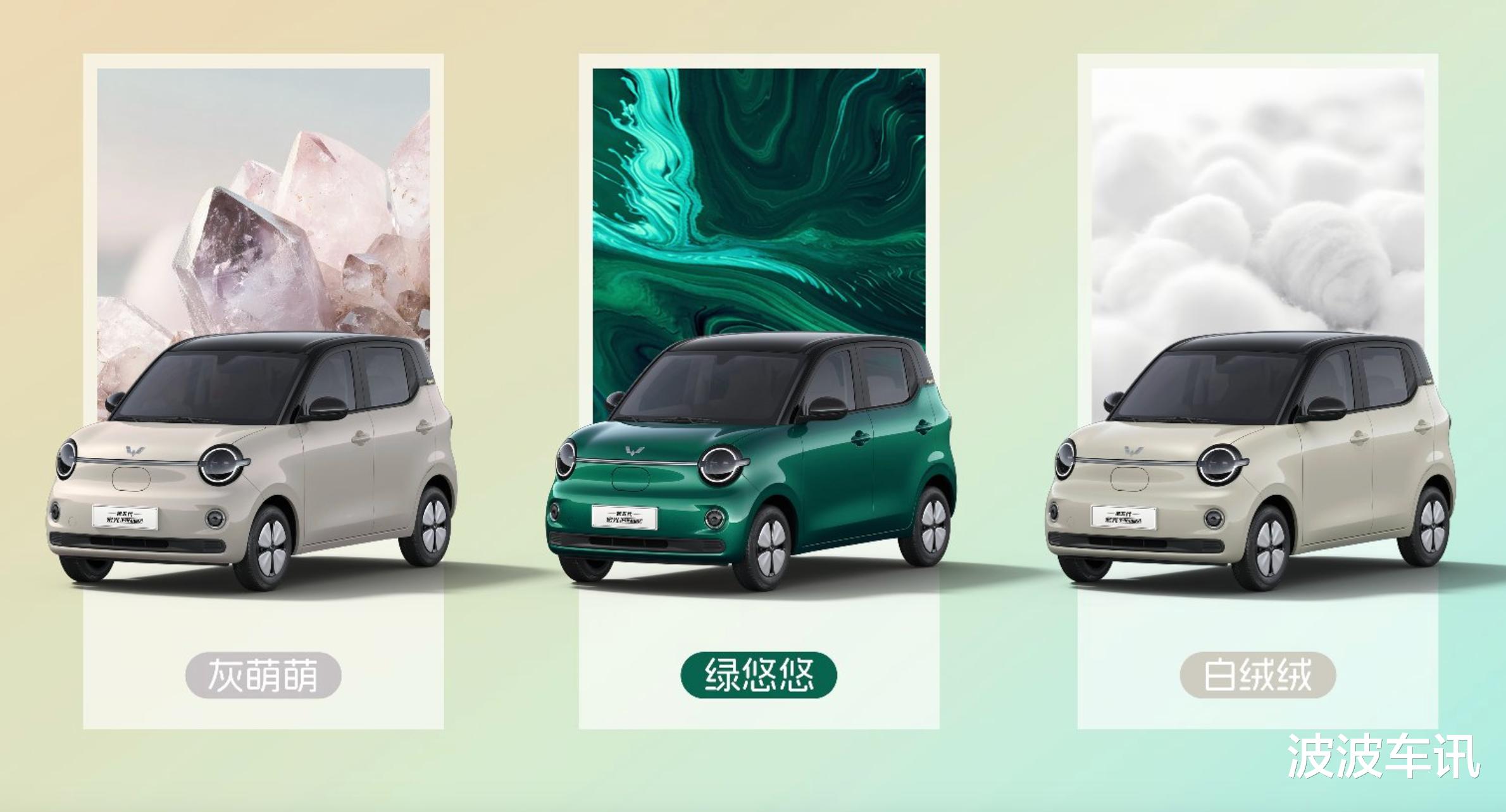 我们可以看到全新一代的宏光MINIEV的前脸的部分细节非常的丰富,新车采用的是圆形复古的大灯组,环形效果确实很有辨识度,大灯之间采用了醒目的装饰条。新车的前脸上半部分采用了圆润的轮廓,下半部分相对要突出一些,两侧有圆形的雾灯组。新车的前脸的最底端还有细腻的包围,上方有黑色的装饰条点缀。全新一代的宏光MINIEV的车身颜色非常的独特,它采用的是三种颜色的布局,分别为灰、绿和白色,均采用黑色的车顶,双拼颜色的车身看起来更加运动一些,并且不用选装,还是很地道的。
