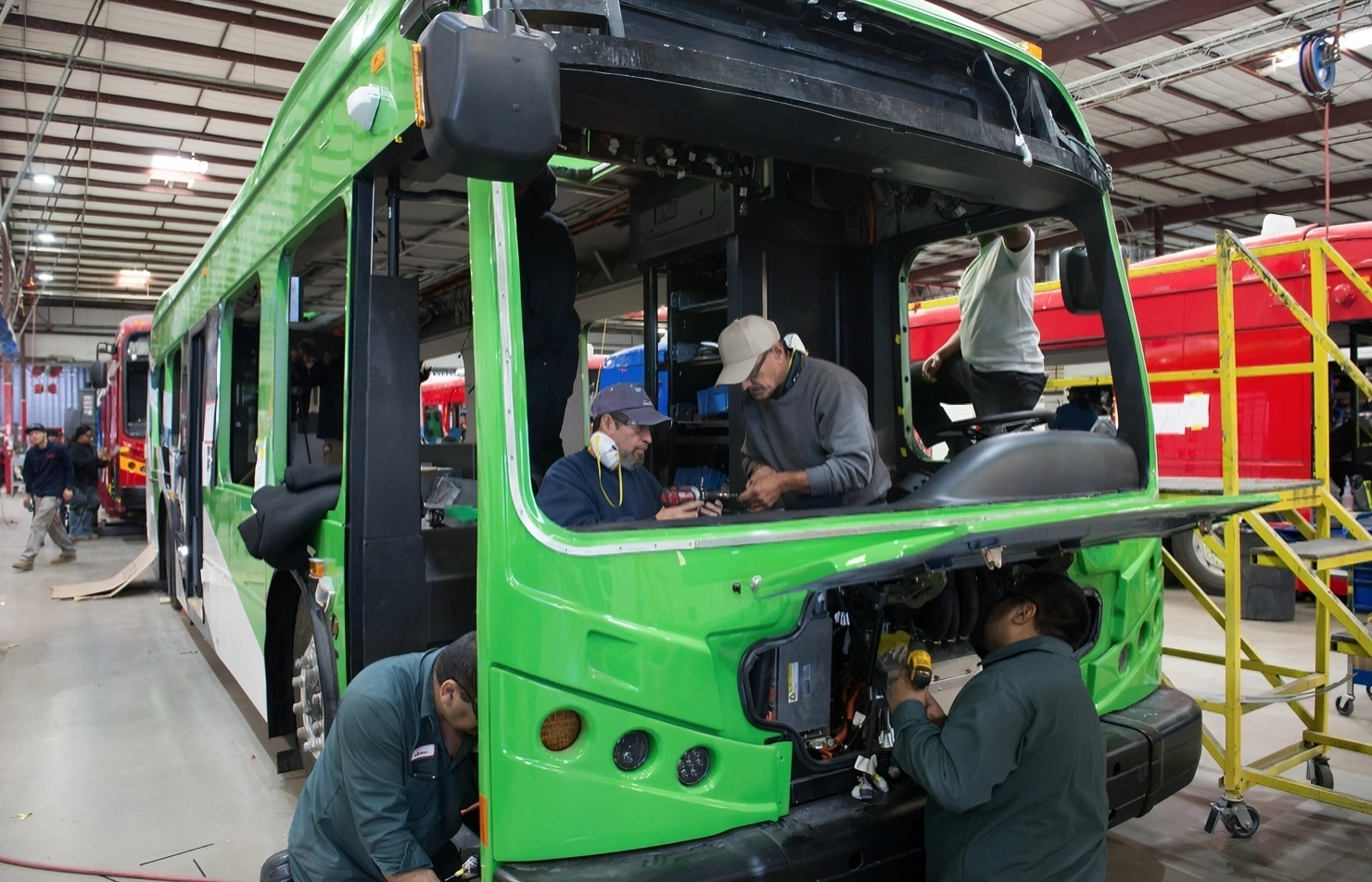 这里的美国工人正忙碌地组装着电动巴士,这些巴士将驶入洛杉矶、斯坦福大学乃至谷歌园区,成为美国公共交通的一部分。从2010年开始,比亚迪布局美国市场,比亚迪副总裁李柯曾经说过:比亚迪在美国的打拼不是从零开始,而是从负数开始。