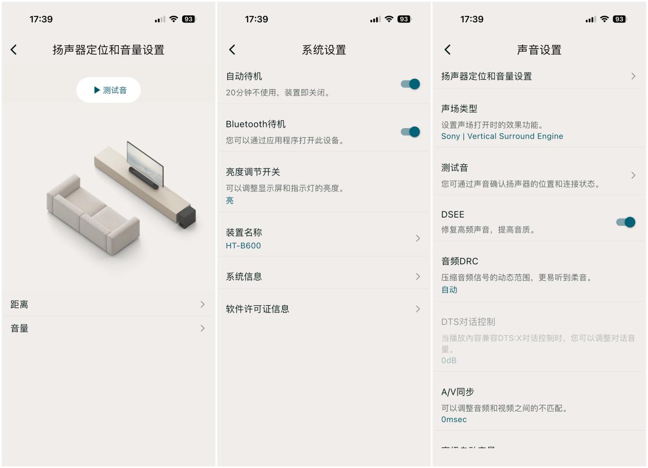 除了遥控器,HT-B600还能通过手机里的Bravia Connect APP来控制,播放时音轨信息显示更清晰完整,可调整的设置更丰富,实现索尼影音生态协同提供的“一站式”家庭影音娱乐体验。