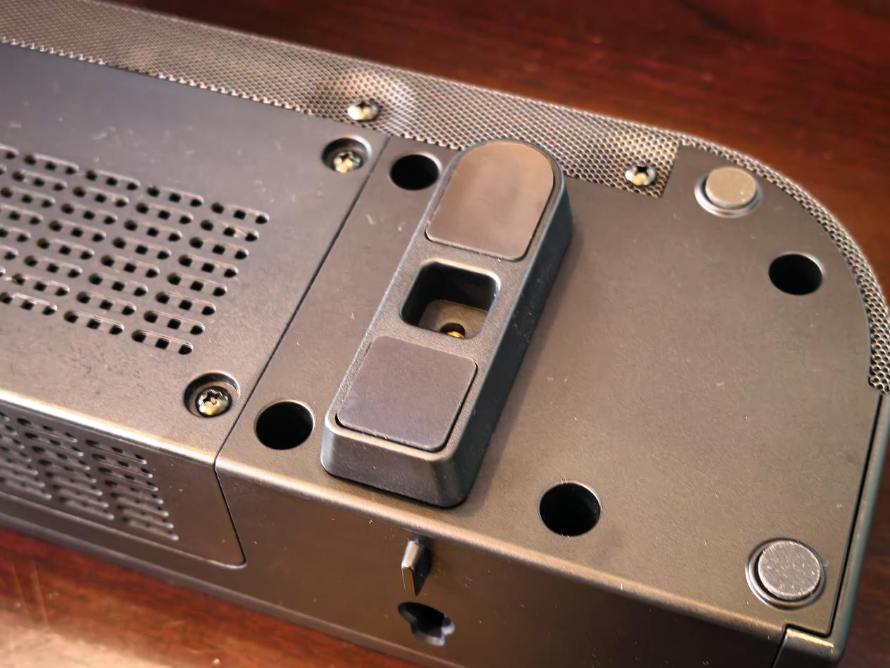 机身背面有一个HDMI eARC接口和一个S/PDIF光纤音频接口。和电视机连接很方便,只需要一根HDMI线就可以了,一头插入回音壁的HDMI eARC接口,另一头插入电视机的HDMI接口即可,轻松搞定。如果你的视频源是电视盒子、高清播放机或者游戏机,还需要另一根HDMI线和电视机连接。