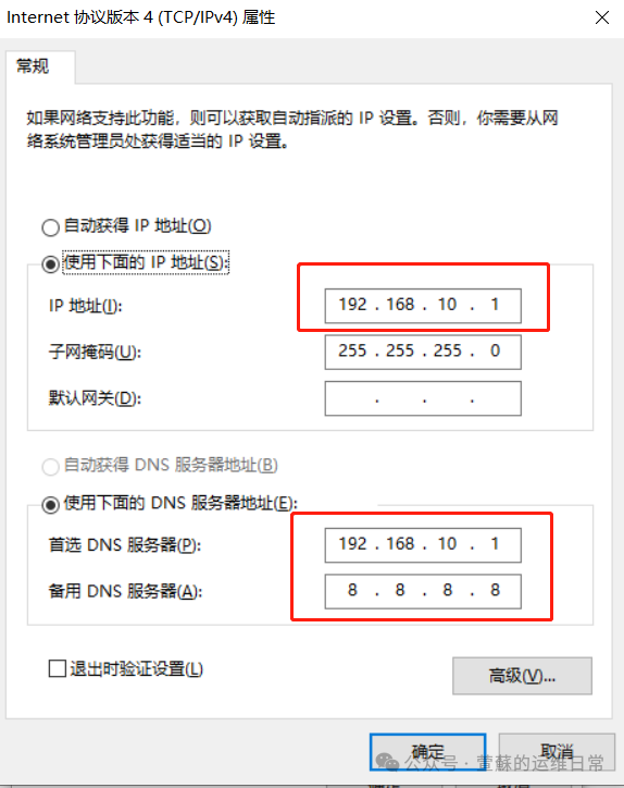 填写子网ip及子网掩码,即确认内网网段,本文网段192.168.10.0/24