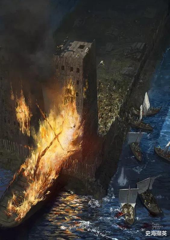 三天后,由希腊雇佣兵组成的佯攻队伍继续强袭北部,成功将大量预备队吸引过去。岂料两艘载有架桥设备的战船,正同步驶近南面缺口,将最精锐的皇家盾兵送上城头。