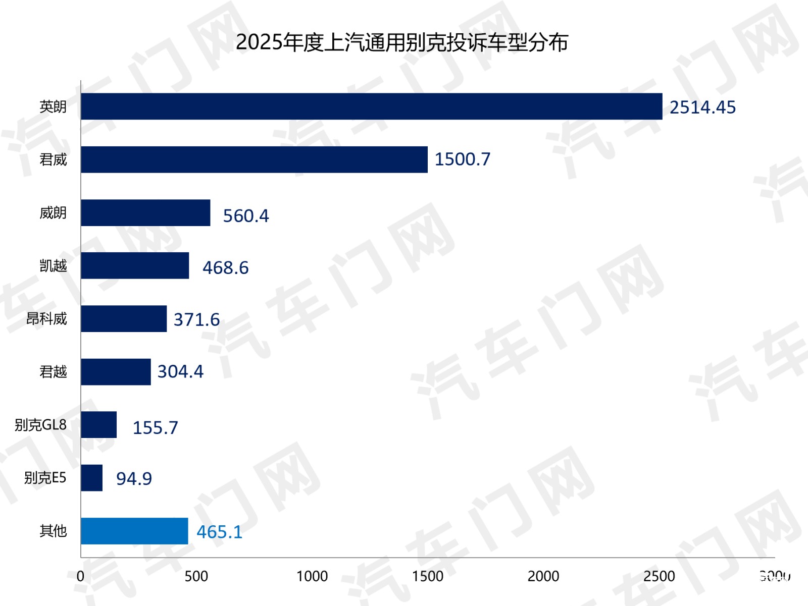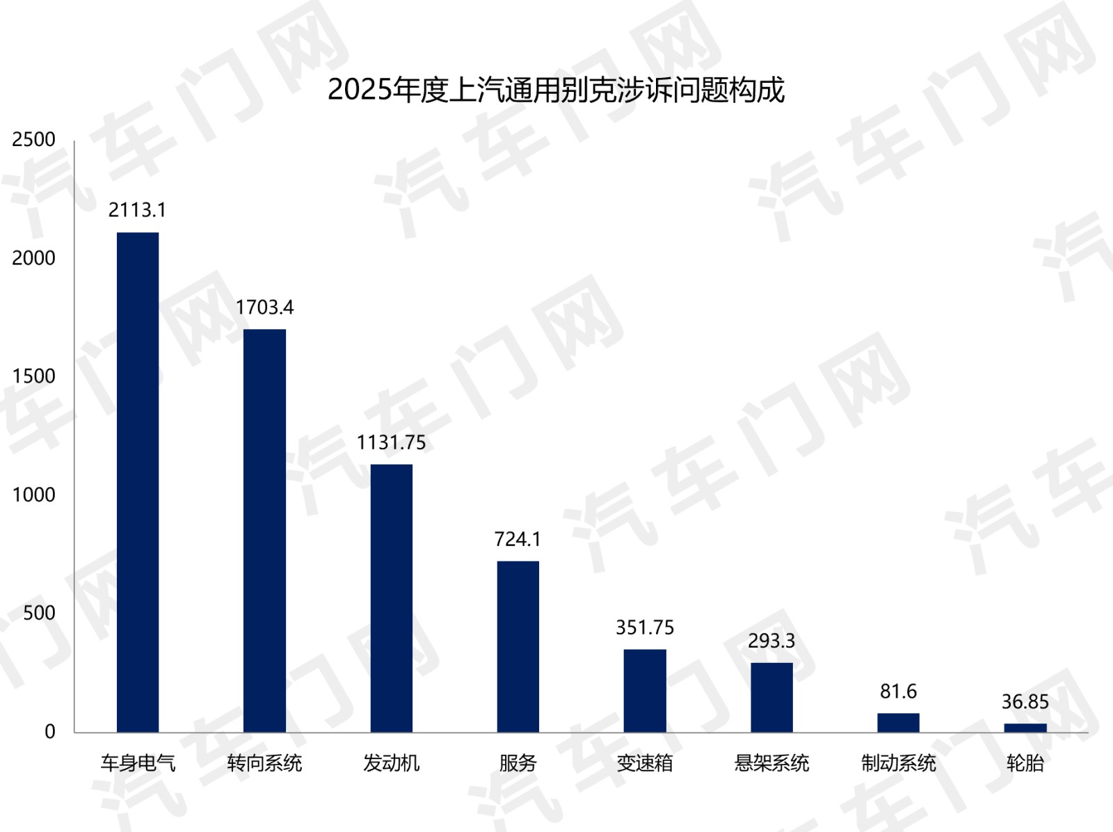 来自汽车门网的数据显示:2025年上汽通用别克的投诉指数达到了6435.85,同比增长了32.64%,居于榜单第五名。