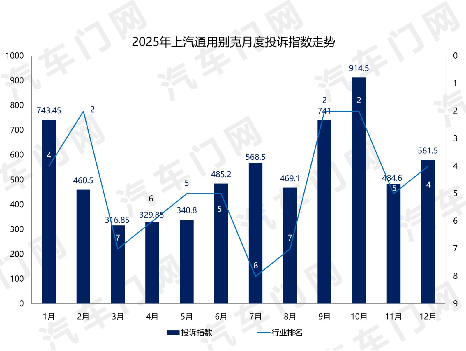 从月度走势来看,全年12个月上汽通用别克共有7个月投诉指数超过400。行业排名中,其更是有8个月稳居TOP5之列。不难看出,2025年上汽通用别克的整体投诉指数与排名都处于高位。