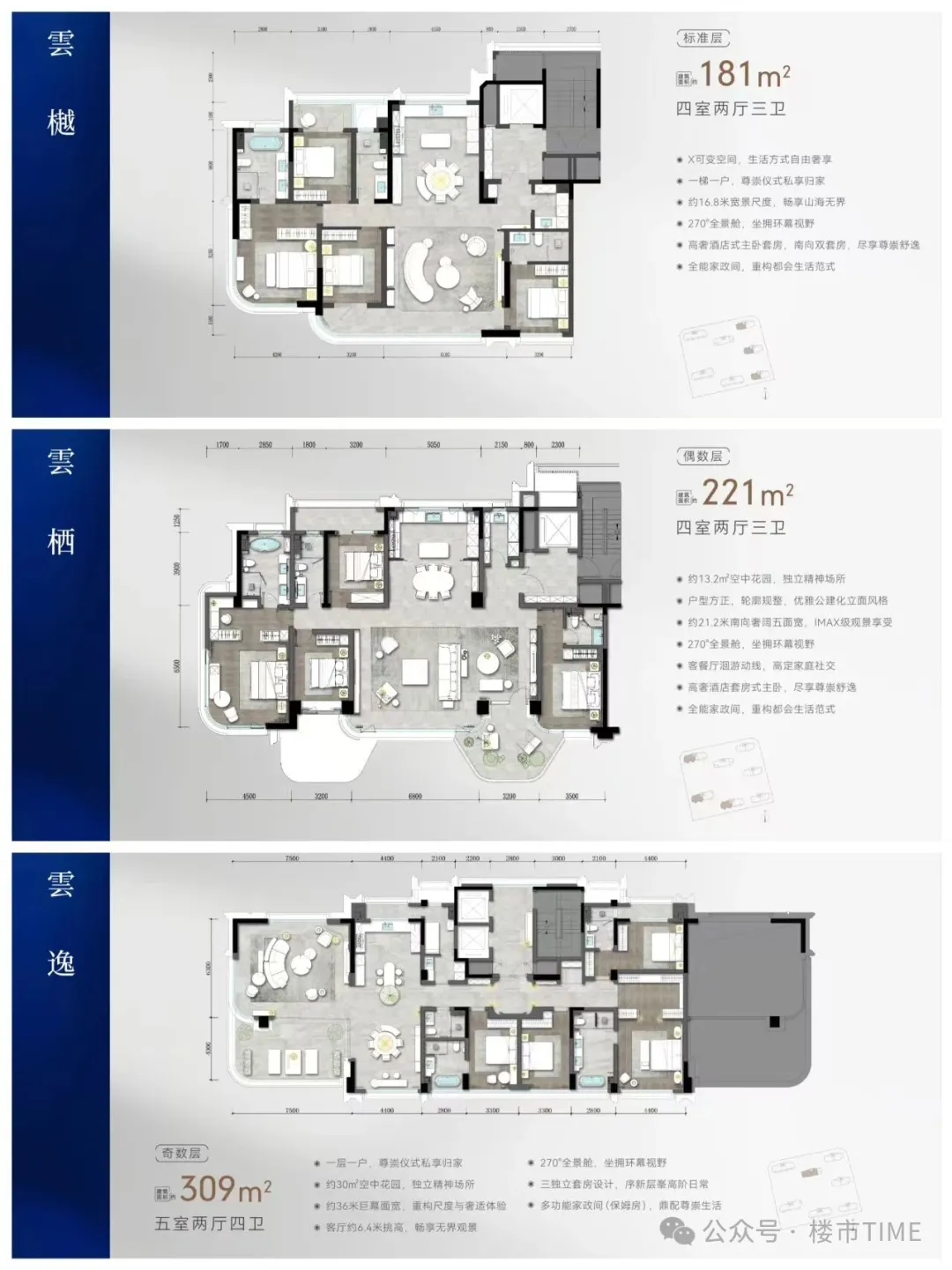 跳出车马院这个点,再看看君一雲启这个项目,就会明白为什么他们非要这么干了。君一这次是真的拼了,看看他们释放的信息,什么“无界生活美学”,什么“悬浮城市甲板”,什么“270°全景舱”,全是冲着崂山豪宅的头把交椅去的。