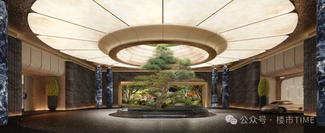 车子先进入一个气派的环形车道,地面铺的是马蹄石(据说很贵),头顶是巨幅的遮雨连廊,旁边是奢石打造的景墙。车停稳,穿着制服的保安(或者管家)小跑过来拉开车门,你优雅地下车,不用担心雨淋,也不用担心日晒,然后穿过那个挑高的遮雨连廊,步行入园或者换乘电梯回家。
