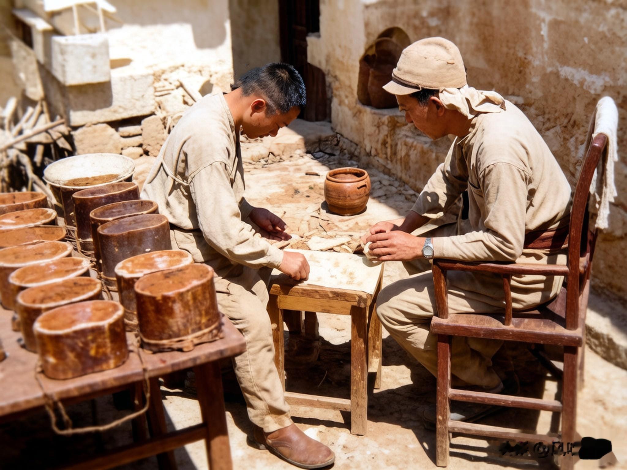 两个日本士兵走在院子里下棋,旁边的桌子上摆着两排饭盒,说明这是城内的一处军营。其中一个鬼子兵戴着明晃晃的腕表。在当时,拥有一块手表是绝大数中国人想也不敢想的奢望。