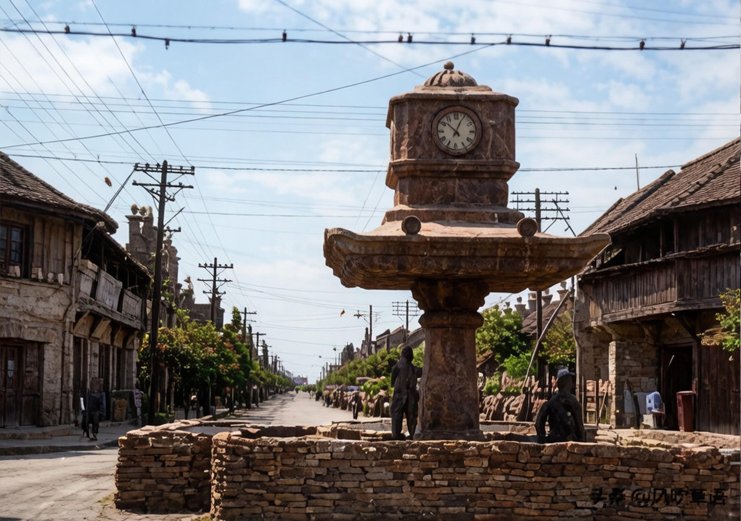 坐落在鼓楼街与马道街交汇处的四面钟,四周围着简易的工事。四面钟是一座高约十米的西式钟楼,因四面都镶嵌圆形大钟而得名。在民国时期是开封的标志性建筑之一。