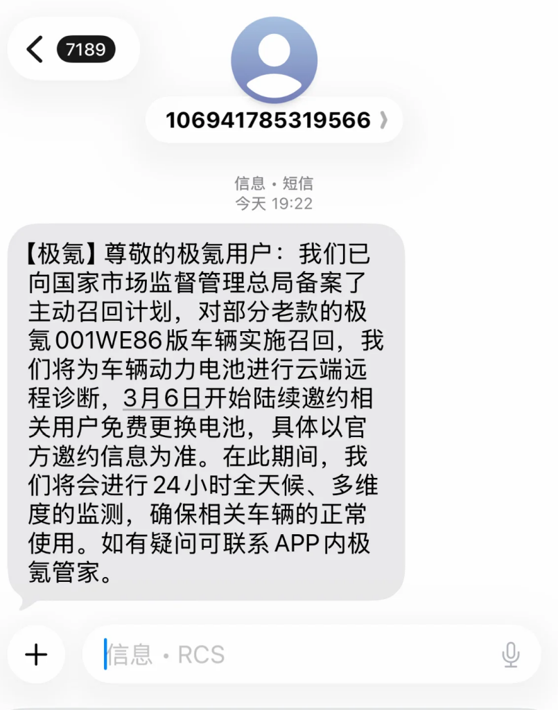 收到召回通知了!不过说真的,我这台23款WE86开到现在,自己都还没发现啥异常,就说要给我换一块新电池,换后又能再战几年