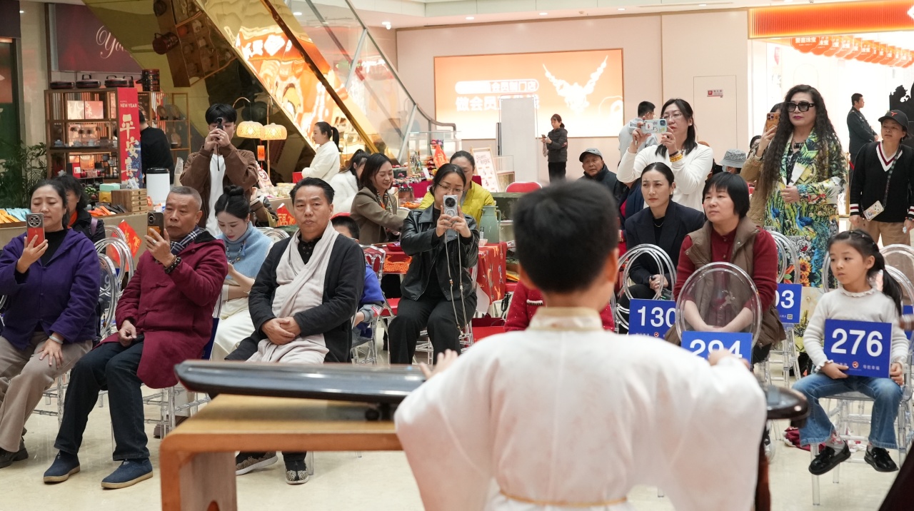 致辞结束后,文艺表演环节精彩上演,为现场观众带来了一场视听盛宴。琴书乐府的师生们轮番登场,琵琶演奏《大道之行·象王行》气势磅礴,古琴合奏《卧龙吟》悠远绵长,古琴吟唱《知心》深情动人,琵琶合奏《如愿》温婉治愈,每一首曲目都演绎出中华传统乐器的独特魅力,赢得了现场观众的阵阵掌声。随后,琵琶合奏《十面埋福》欢快喜庆,主持人带领现场来宾传递福气,送上新春的美好期许;最后,一曲《沧海一声笑》激昂洒脱,为文艺表演环节画上了圆满句号,也让现场氛围达到了高潮。
