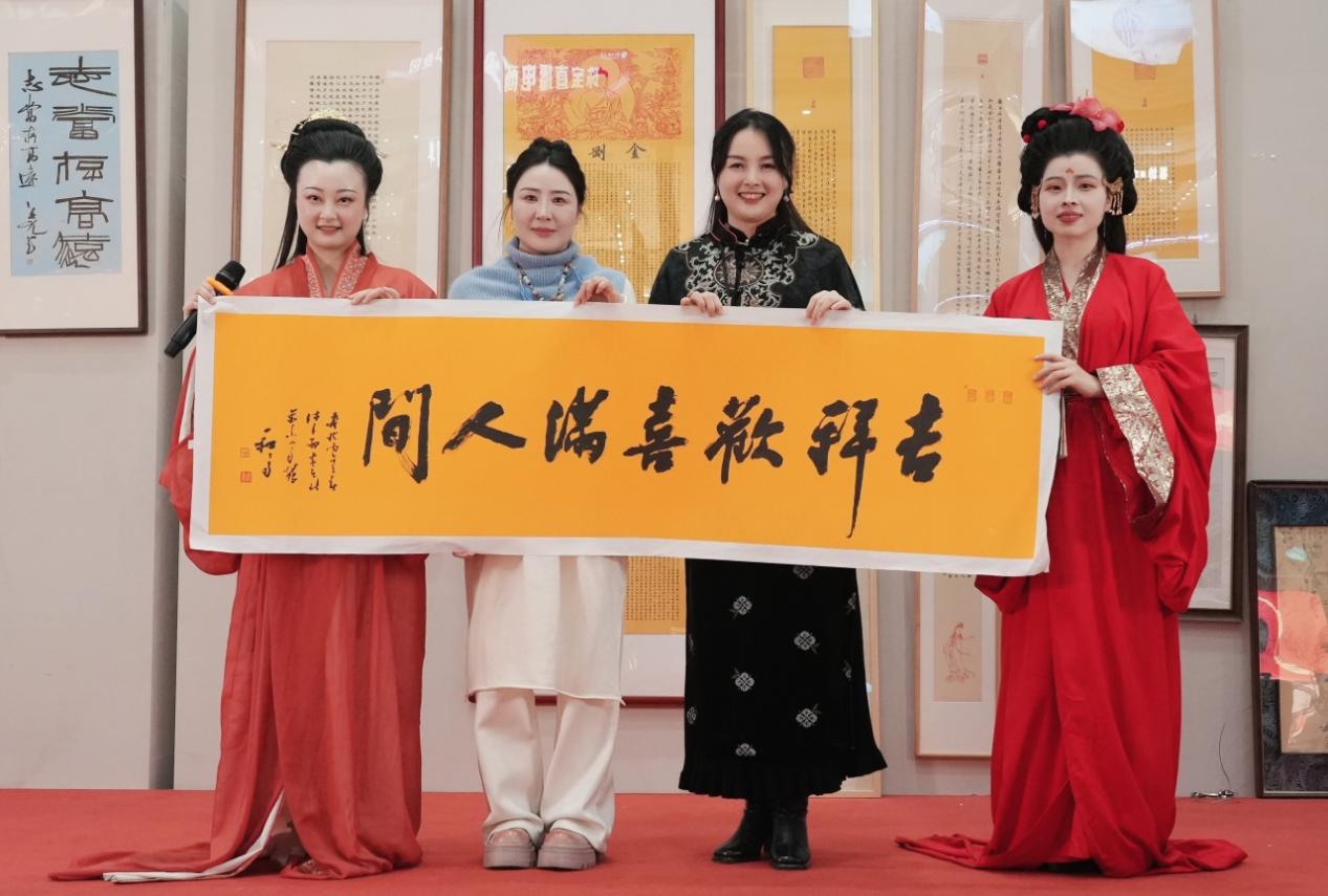 本次活动以“文化传情、公益助学”为核心,融合书画作品义卖、写春联送祝福、文艺节目表演三大板块,既彰显了中华传统文化的魅力,又凝聚了社会各界的公益力量。活动现场,琴书乐府精心筹备的50幅书画作品整齐陈列,成为全场最耀眼的焦点。这些作品均出自琴书乐府创始人张梦瑶、其恩师童朝会、中书协会员王元、国学学者吴凤龙、学员及好友之手,创作者涵盖老中青少四代,最小的仅7岁,最年长的达90岁,真正实现了“三代师生,四世同堂”的文化传承盛景。每一幅作品都凝聚着创作者的心血与诚意,短则耗时1小时挥毫而就,长则承载着四五十年的艺术积淀,一笔一画间尽显笔墨情怀,一字一墨中暗藏公益初心。