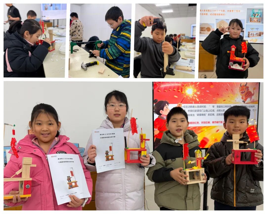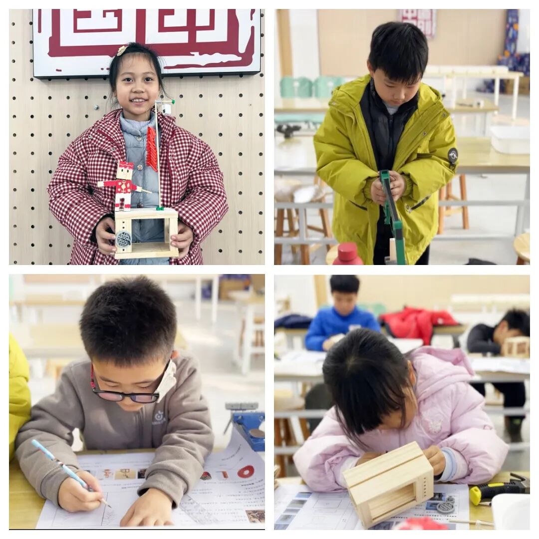 “木仔工坊”寒假造创营推出的青少年Z-STEM教育工程启蒙课程,小组协作闯关,材料盲盒升级,作品专属收藏,引导同学们工程设计练思维、动手制作享乐趣、分享推介涨自信,从设计图纸到亲手创作,再到向大家介绍自己的“年味作品”,每一个环节都藏着沉浸式体验的惊喜与收获。