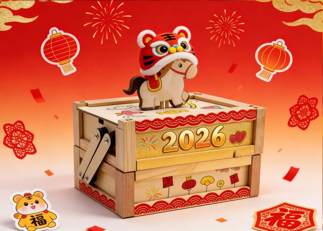 寒假开启新模式,喜迎春节新花样。近日,大诺科教“木仔工坊”2026寒假造创营火热举行,“放鞭炮”AUTOMATA木偶机、零食宝箱、《年的故事》木偶剧,三件年味满满的作品,让同学们爱上造创、玩转春节。