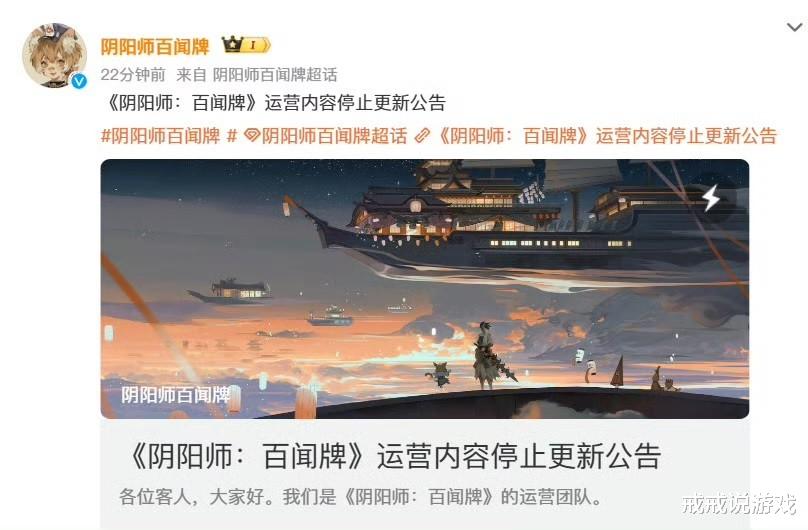 《阴阳师:百闻牌》作为网易旗下阴阳师IP的卡牌衍生作品,自上线以来就以其精美的和风画面、独特的卡牌机制和浓郁的阴阳师世界观吸引了一批忠实玩家。如今,官方一纸公告宣告了游戏内容更新的终结。从2026年1月1日起,这款游戏将不再有新式神、新卡牌或新玩法模式的加入。游戏圈内人常开玩笑说,判断一个游戏是否还活着,就看它还有没有更新。按照这个标准,百闻牌算是进入了“半退休”状态。不过比起那些直接关服停运的游戏,百闻牌的做法算是相当体面。它让人想起那些宣布退休但依然每天出现在公园遛弯的老先生,生活节奏慢了,但生活还在继续。