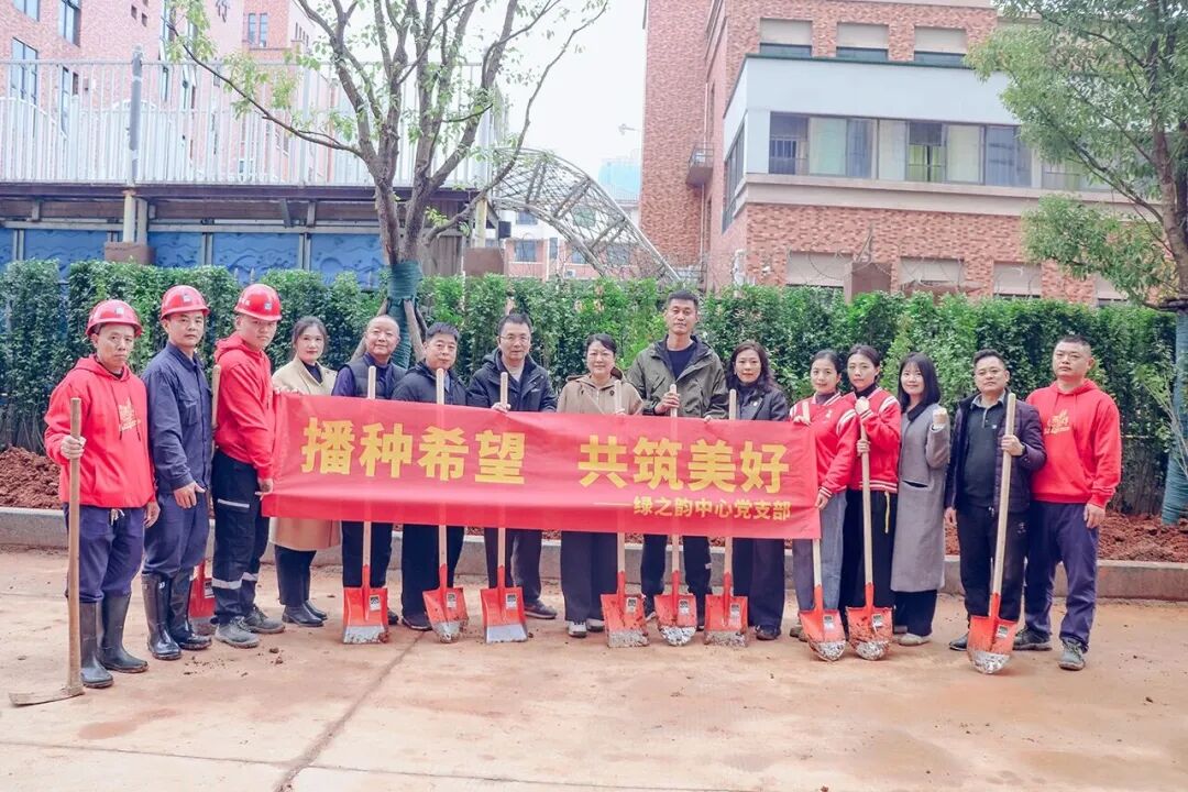 3月11日,在植树节来临之际,绿之韵中心党支部以“播种希望 共筑美好”为主题,在绿之韵中心开展植树节主题党日活动。绿之韵集团总裁劳嘉、绿之韵公益基金会秘书长蒋文、湖南绿之韵房地产开发有限公司总经理周君四,副总经理劳毅与绿之韵中心党支部书记徐继雷带领党员志愿者们共执春锄,以草木为墨,为绿之韵中心园林项目工笔春色。
