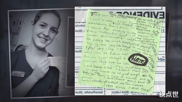 在这部Netflix纪录片的大部分镜头中,身陷警方拘留的莱特比要么对问题回答“无可奉告”,要么神情恍惚。但当调查人员出示几张便签纸,并问及她在上面写下的内容——包括那句“我是恶魔,我罪该万死”时,她的防线被突破了。莱特比如是说:“我当时就是觉得,所有事都压得我喘不过气。那是在我被调离岗位后不久写的。我觉得自己可能在无意识中伤害了他们,这让我深感自责(I felt like in my practice I might have hurt them without knowing through my practice. And that made me feel guilty)。”