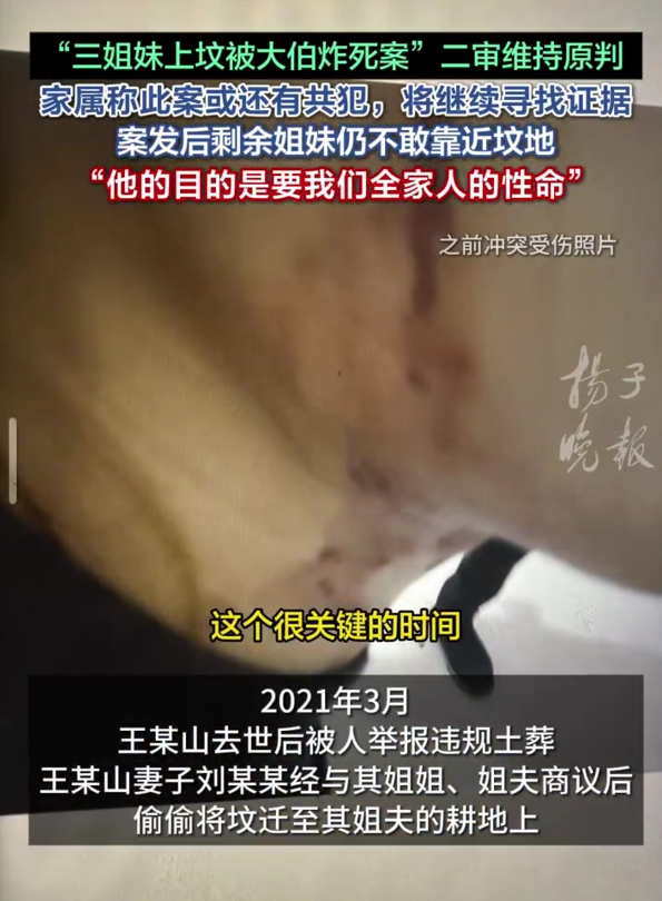 悲剧的背后,是两家长达数年的积怨。王女士称,自家与大伯王某东一家多年来因一块宅基地产生了诸多矛盾。自2018年父亲去世后,大伯一家还不时上门闹事。据一审判决书显示,被告人王某东与其三弟王某山(三姐妹父亲)一家因耕地等纠纷常年不和。2021年3月,王某山去世后因违规土葬被举报,王某山妻子刘某某经与家人商议,将坟迁至姐夫的耕地上,这一行为引发了王某东的强烈不满。2023年5月,两家再次因琐事发生冲突,王某山的二女儿王某欢将王某东妻子殴打致轻微伤,这使得王某东对王某欢等人的仇恨进一步加深。