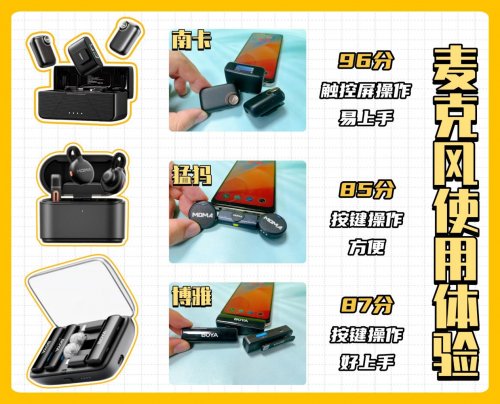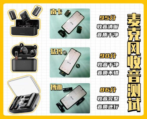 四、总结那么大家现在会挑领夹麦克风了吗?简单来说,猛犸这款兼具精致感与实用性;博雅这款的收音更适合外出拍摄多点;而南卡这款领夹麦,在收音效果和降噪性能上都有着出色表现。这三款产品各具特色与优势,都能保证我们在拍摄时候的使用体验。