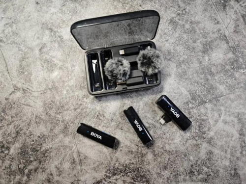 博雅BOYALINK,发射器拿在手里分量轻,普通领夹加简易背夹的设计,夹在衣领或背包上都方便,不用费心调试,开机连手机就能直接用,对新手很友好。而且续航够实在,充满电连续用大半天没问题,日常拍短视频不用总惦记充电。不过机身没做屏幕,电量和降噪需要看指示灯有没有打开。另外它的接口适配不够灵活,换安卓和苹果手机得来回拔插转接头。