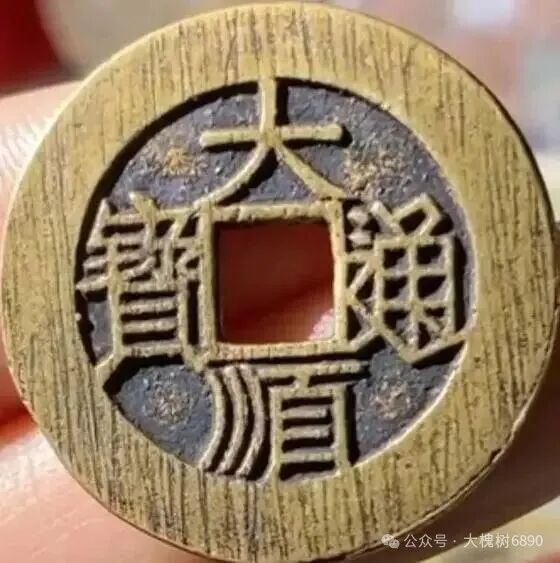 ⑩大顺通宝、西王赏功是张献忠在成都建立大西政权,改元大顺时铸造“大顺通宝”;此外还铸造了极其珍稀的“西王赏功”钱,用于奖赏有功将士,“大顺通宝”制作精良,铜质金黄,钱文楷书。“西王赏功”有金、银、铜三种材质,存世极少,是中国古泉五十名珍之一。说起张献忠其人,历史无法还原真像,自然毁誉参半。但作为与闯王高迎祥,李自成同时起兵的陕北汉子,使终根除不了他贩枣、捕快、流寇的阶级标签。再加之当时的农民阶级自私自利,妄自尊大,从不团结的陋习让他独自发展,最后在成都建立大西政权。当时如果与北方李自成戮力同心,南北对进,也许中国历史会重写!但历史不能假设,至于张献忠屠川一事,个人认为极大可能是清军所为,嫁祸于张献忠,造成大顺政权的阶级矛盾升级,而清军坐收渔利!事实上事情就是这样发展的,张献忠也在1646年与清军对战中中流矢而亡!
