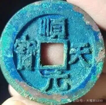 ⑥天启通宝(徐寿辉版)是元末南方红巾军领袖徐寿辉于至正十八年(公元1358年)改元天启时铸造的“天启通宝”。该钱币与后来明朝熹宗所铸“天启通宝”容易混淆,徐寿辉版的“天启通宝”制作相对粗糙,存世较少。如果说韩山童,刘福通是大别山以北白莲教首领,那么徐寿辉就是鄂西白莲教首领,他们都于1351年头裹红巾焚香起义,而徐寿辉在一开始就称皇帝,在至正十八年改治平为天启,1360年被部下陈友谅杀害!唉一个贩卖粗布的贩子客,一个英武果敢,人品贵胄的土皇帝因用人不当最终死在部属之手,何其悲也!