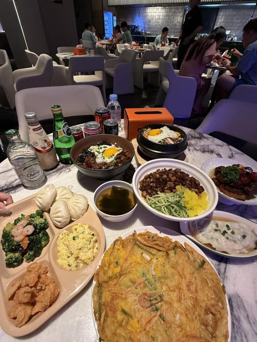 种类丰富,热菜、凉菜、甜品、饮品都有。口味均衡,不会太咸太油,环境干净,吃饱吃撑没问题。