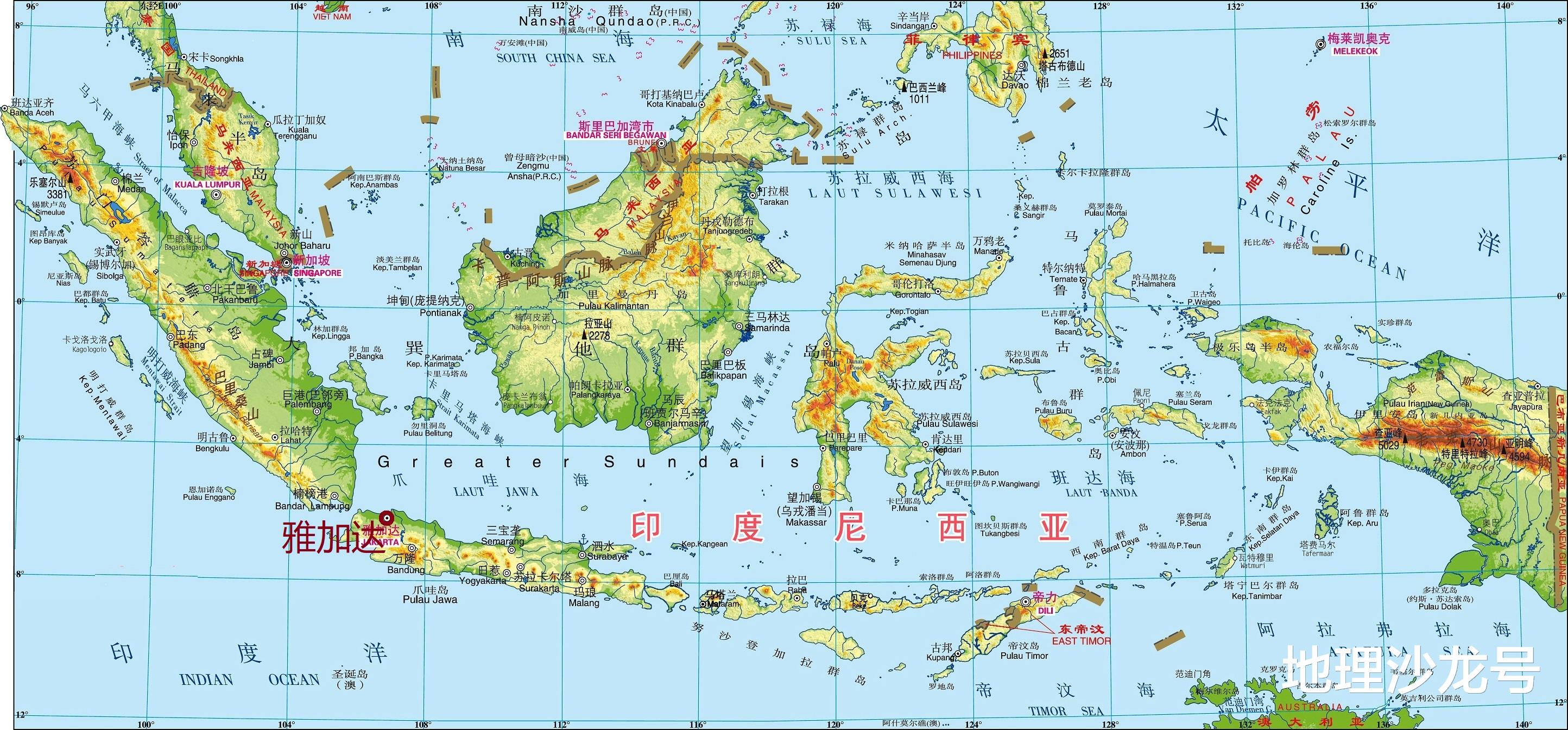 今天,我们来介绍一个受到海水严重威胁的超大城市,那就是印度尼西亚曾经的首都“雅加达”。印度尼西亚是一个地跨亚洲和大洋洲的群岛国家,全国由17000多个岛屿组成,被称为“千岛之国”。由于印度尼西亚所在的地区,位于亚欧板块、印度洋板块和太平洋板块三大板块的消亡边界,三大板块之间的碰撞挤压,使得地层断裂升降,从而形成数量巨大的岛屿,这些岛屿大多都是大陆岛,岛上多山地丘陵地形。