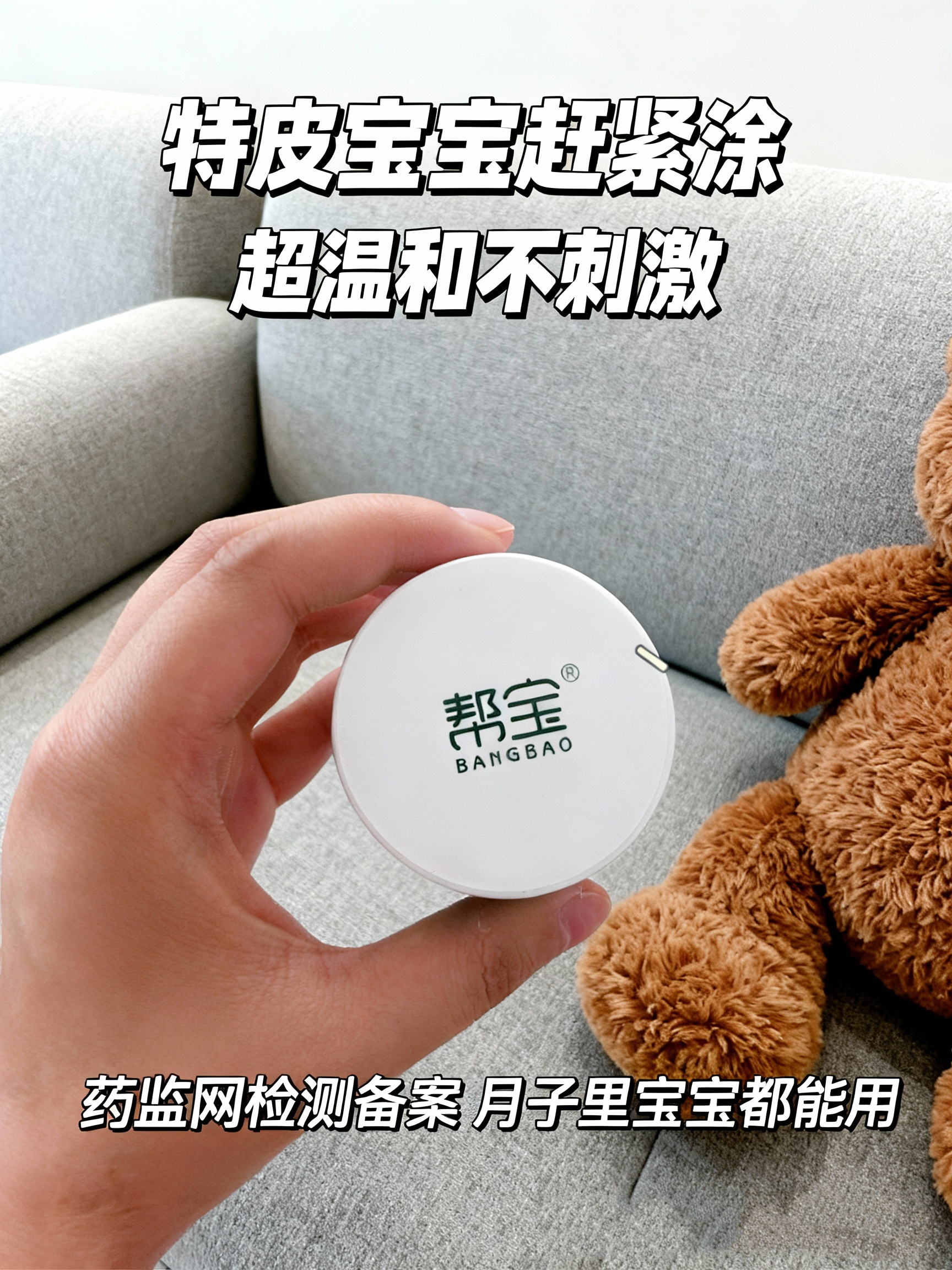 宝宝干性湿疹的护理,首先要从日常肌肤保湿做起。帮宝提醒家长,选择温和无刺激的保湿产品是关键。帮宝湿疹膏作为品牌王牌产品,坚持0激素、0酒精、0香精、0防腐剂的“四零”配方标准,专为婴幼儿娇嫩肌肤研发。其质地轻盈易吸收,涂抹后能快速形成保护膜,锁住肌肤水分,缓解干燥紧绷感,从根源上减少干性湿疹的发作几率。
