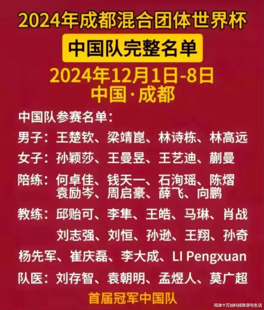 在这场即将到来的盛宴中,国乒派出了前所未有的强大阵容,堪称豪华之师。世界排名第一的王楚钦和孙颖莎携手出战,这两位年轻的乒乓球天才已经多次在国际赛场上崭露头角,他们的组合无疑是本次混团世界杯的一大看点。