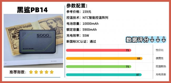 2:黑-鲨刀锋2充电宝 综合评分:90+充电效率:★ ★ ★安全性:★ ★ ★ ★
