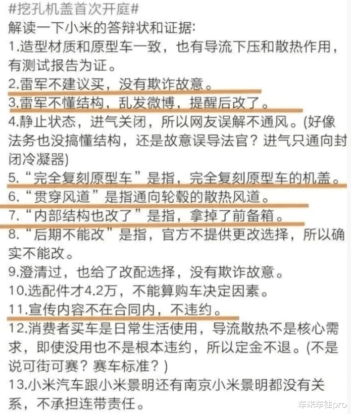 3. 法律操作引争议,让企业形象更显被动此前小米试图申请变更法院管辖权,引发部分车主不满。如今又用“微博不算数”作为辩护点,使得维权方和舆论进一步强化对小米的指责:缺乏担当、回避责任。