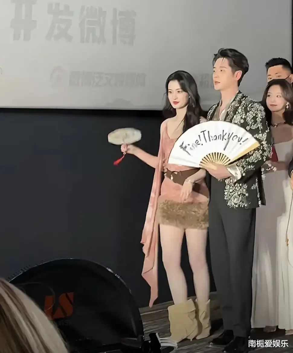 活动现场,二人首先复刻了剧中“暴君搂妖妃出场”的经典桥段。王楚然身着吊带短裙,眼尾轻挑间媚态流转;丞磊一身黑衣,冷峻中透着掌控欲。当王楚然步伐稍快偏离动线时,丞磊迅疾伸手将其揽回腰侧,动作干脆利落却掌心虚扶,尽显绅士分寸。镜头特写捕捉到他耳廓泛红、眼神飘忽的羞赧反应,与剧中阴鸷暴君形象形成极致反差,被网友称为“性张力与纯情感并存的教科书级演绎”。