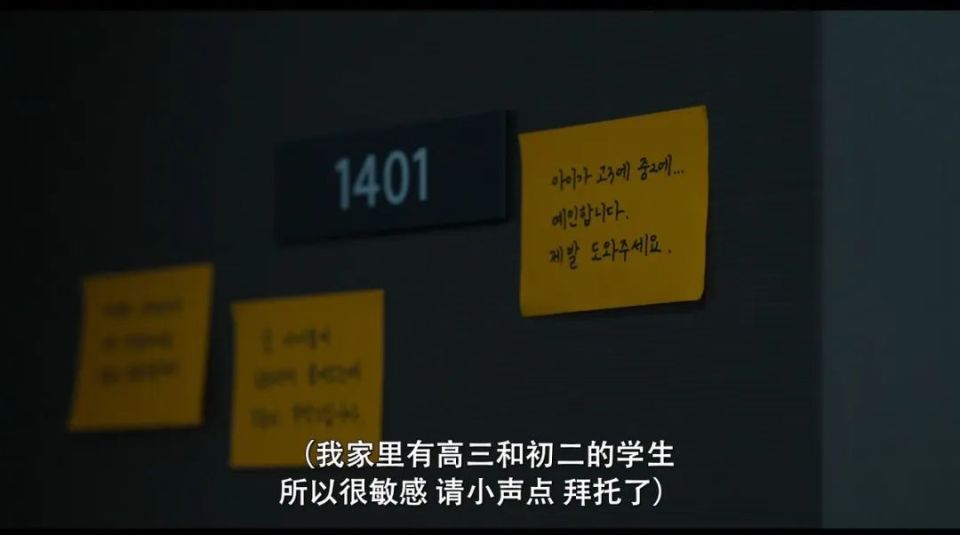 到了影片后半段,其他住户的故事一一揭露出来,原来噪音的来源只是一场关乎私欲、复仇的邻里互害。
