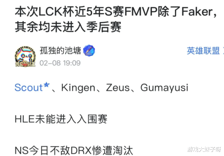 随着NS的出局,一个略显残酷的事实也摆在了台面上,近五年世界赛FMVP选手,已经只剩下Faker还留在赛场,其余人无论巅峰多耀眼,终究还是没能逃过版本,状态与时间的考验,世界赛光环在联赛强度面前,并不是免死金牌,这也是职业赛场最真实的一面。